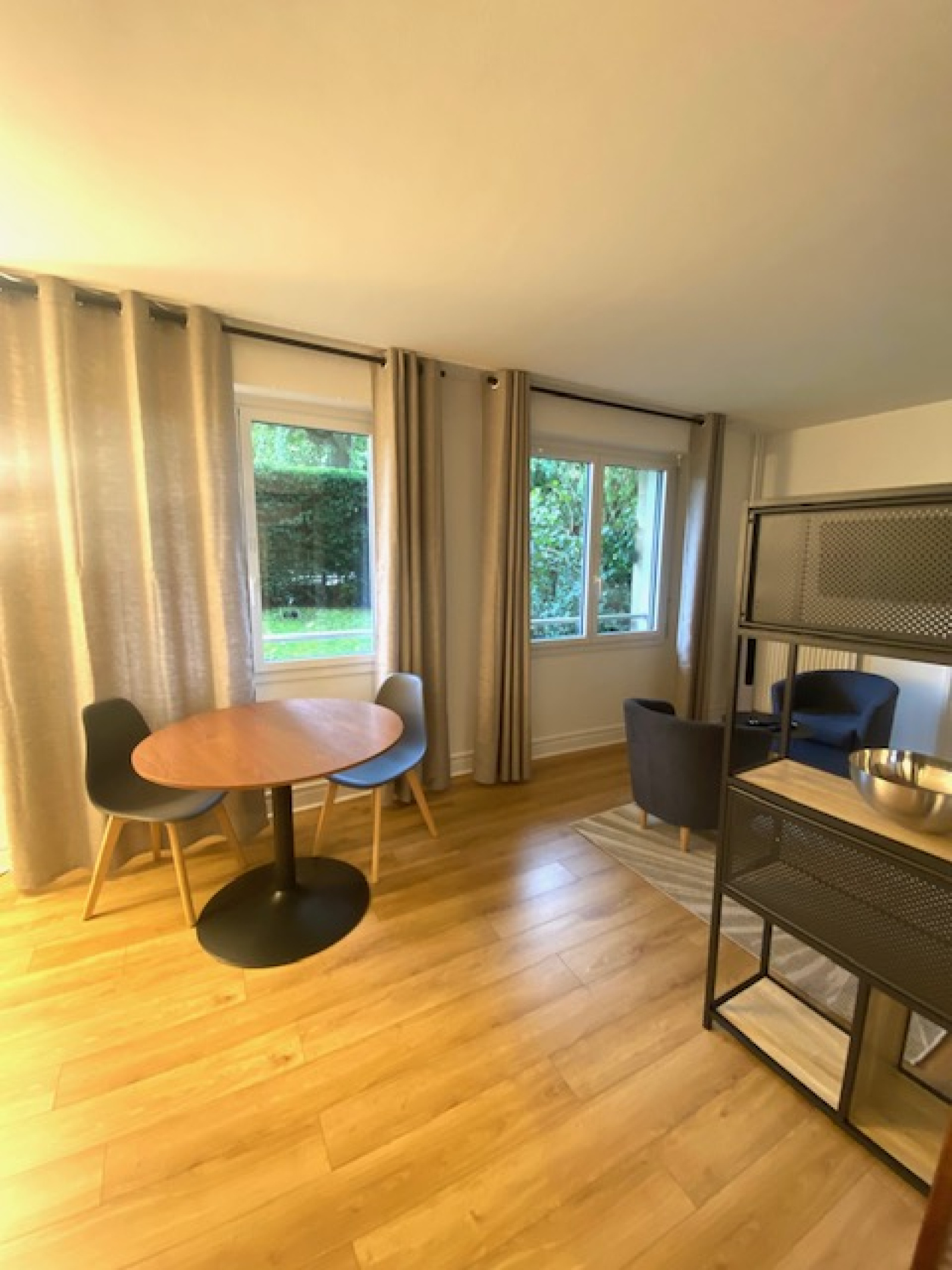 ASNIERES rue Parmentier à 10 mn de la gare et bus Levallois Bécon dans résidence avec gardien , en rez de chaussée sur jardin sans vis a vis , agréable studio meublé ,de 35 m² comprenant entrée , cuisine aménagée équipée , séjour , salon , placard, télévision , salle d'eau et un WC. une cave complète ce bien . Parfait état .chauffage et eau chaude collectifs Loyer 1050€ -Honoraires 528,45 €..